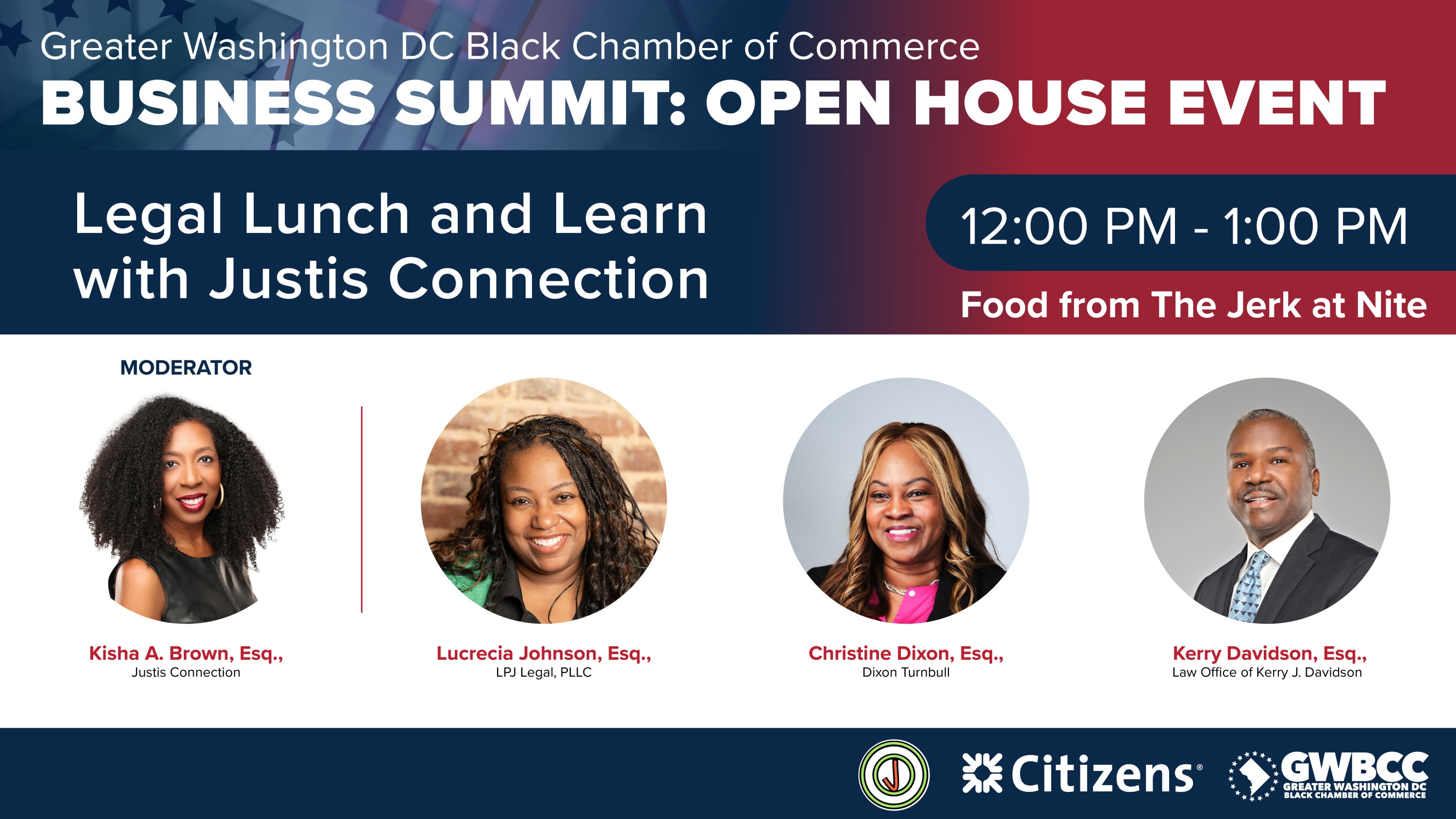 12:00 - 1:00 PM | Legal Lunch & Learn w/Justis Connection Panel & Resource Fair |